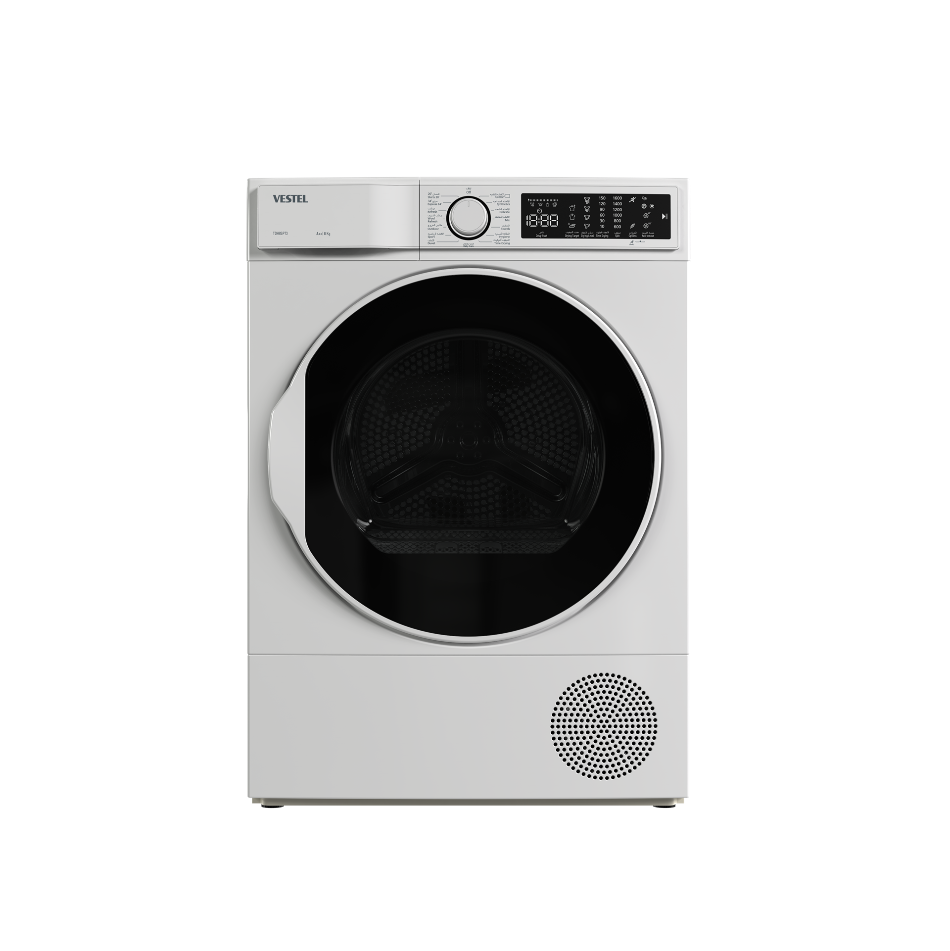 مجفف ملابس فيستل بمضخة حرارية 8 كجم – موفر للطاقة – متعدد البرامج