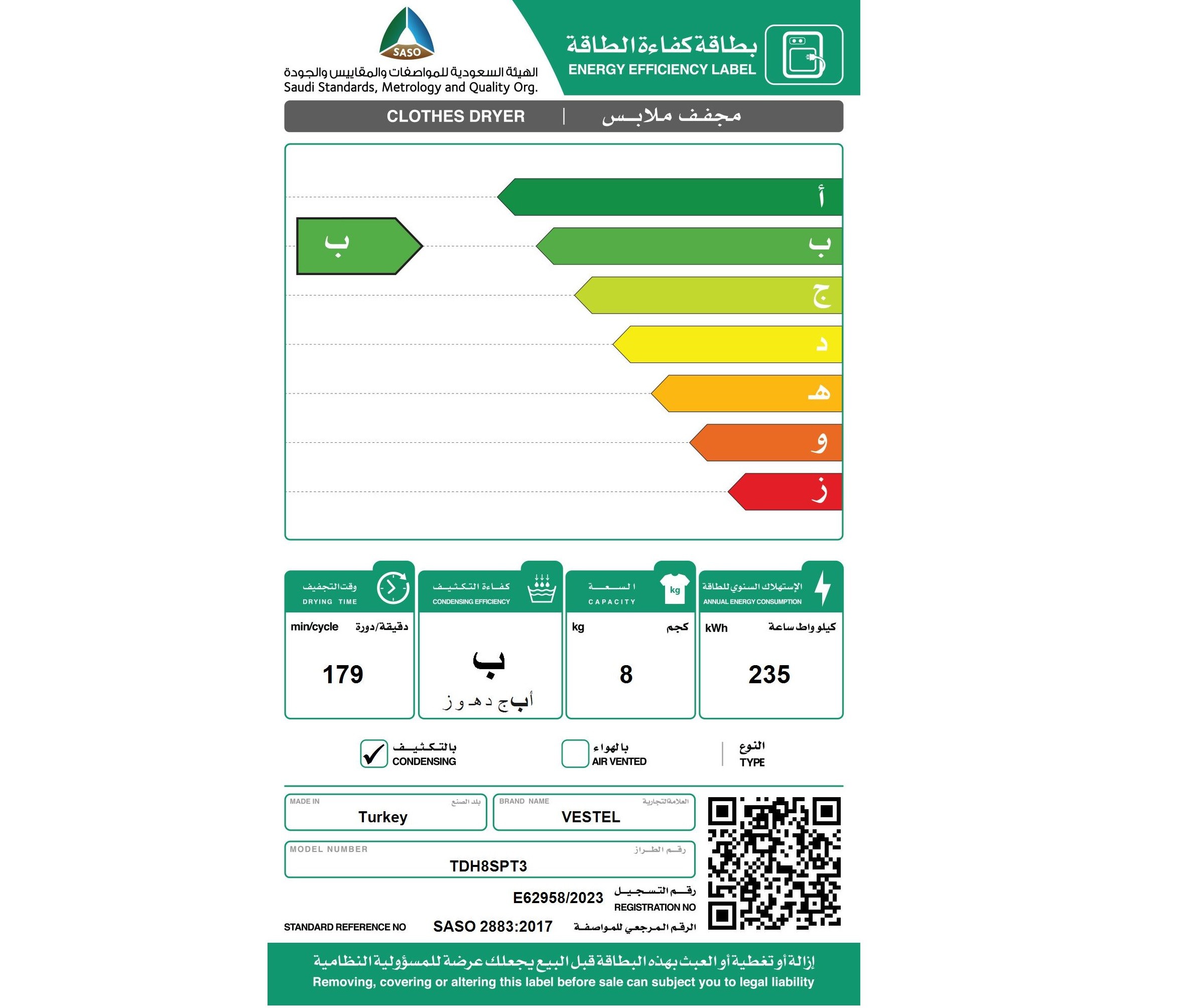 - سعة التنشيف: 8 كيلو.